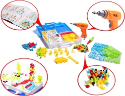 Fantastique ensemble de construction pour le petit bricoleur! Le set contient 237 pièces permettant de créer diverses formes et modèles. Les enfants peuvent jouer avec des vis multicolores et utiliser la perceuse pour découvrir l'expérience d'être un vrai constructeur.