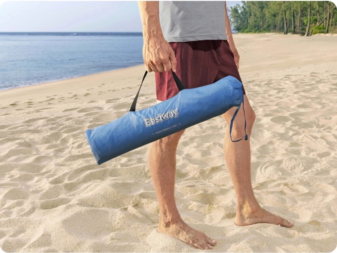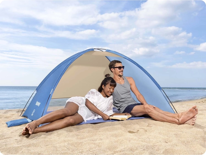 Profitez de confort et de sécurité à la plage avec l’abri Bestway Beach Ground 2. Le polyester 190T résistant avec enduction PA 300 mm et la protection UV UPF 80+ protègent du soleil et des petites averses, tandis que l’ouverture frontale assure une bonne circulation de l’air. Grâce aux arceaux en fibre de verre, la structure est souple, stable et rapide à mettre en place.
