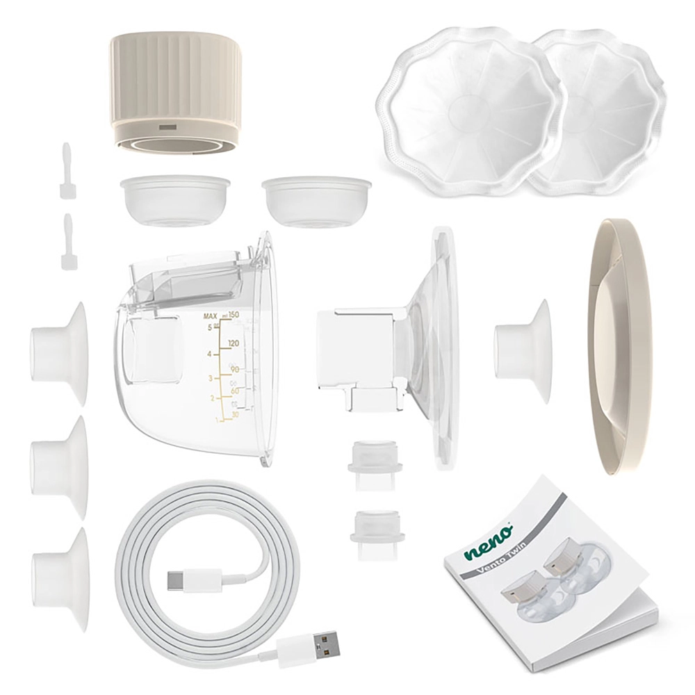 Les coussinets en silicone ultra-doux protègent la peau sensible et, avec quatre inserts (15/17/19/22 mm), aident à trouver une adhérence parfaite sans pression ni marques. Le système fermé hygiénique empêche le reflux et la contamination, tandis que le fonctionnement silencieux est idéal pour le tirage nocturne sans réveiller bébé. Chaque unité est légère (143 g), dispose d’un minuteur avec pause, d’un récipient de 150 ml gradué et se recharge rapidement via USB‑C.