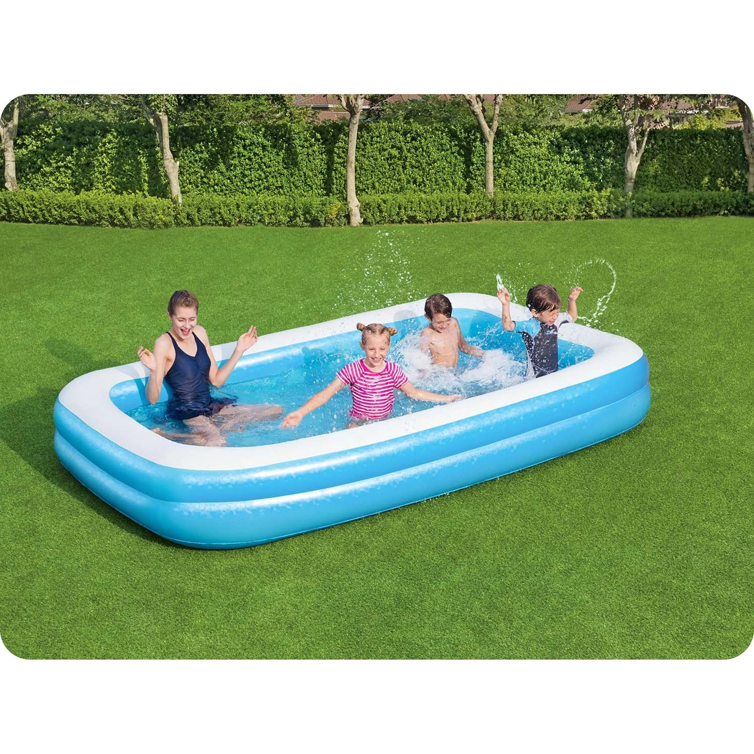 Les dimensions 305 × 183 × 46 cm et le volume de 850 l offrent suffisamment d’espace pour les jeux d’eau des enfants comme des adultes.
