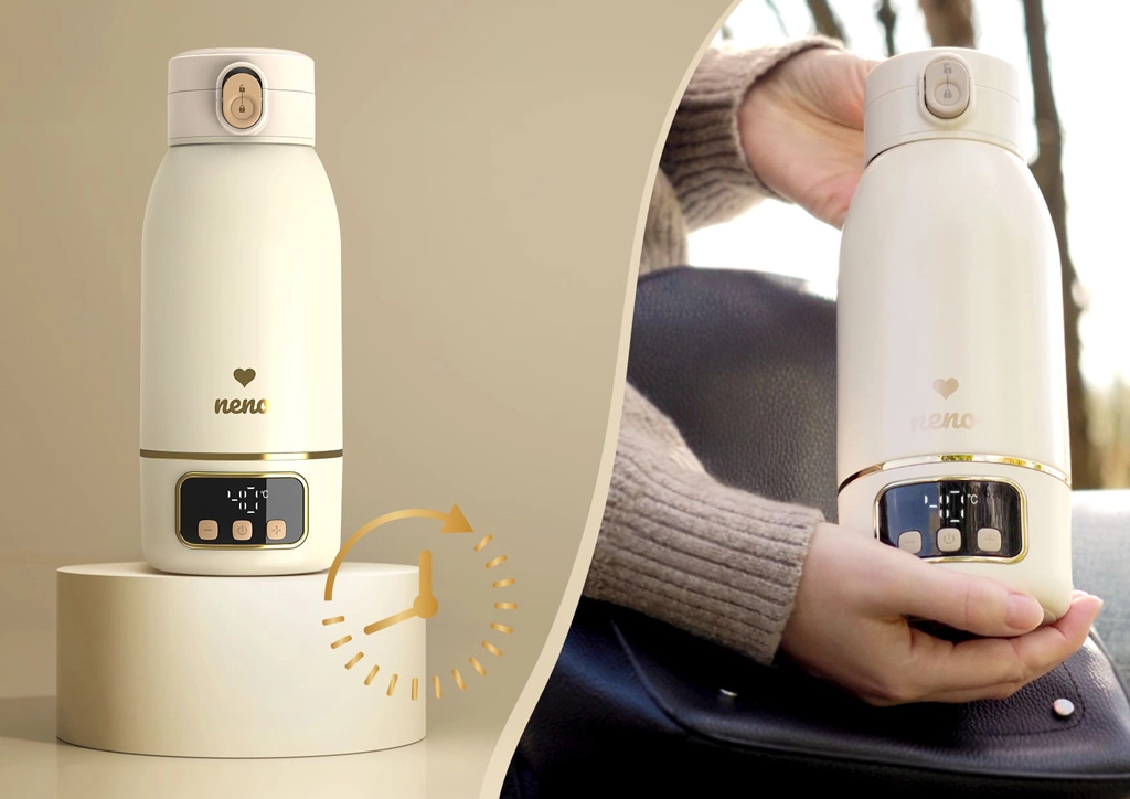 Voyagez l’esprit tranquille avec le chauffe-biberon portable Neno Savia, qui réchauffe rapidement le lait ou l’eau, maintient une température constante de 35 à 55 °C et permet jusqu’à 8 cycles de chauffe par charge. Grâce à ses dimensions compactes, son fonctionnement sans fil, son bouchon étanche et sa capacité de 500 ml, il est idéal pour les sorties, la poussette et même l’avion.