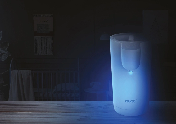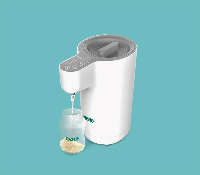 Neno Aqua est un chauffe-eau et doseur d’eau multifonction qui simplifie la préparation des laits infantiles, thés et autres boissons. Il peut automatiquement faire bouillir l’eau à 100 °C puis la refroidir rapidement ou la maintenir à la température choisie, entre 38 et 85 °C. Grâce à son panneau tactile doté d’icônes claires, tout se règle d’une seule main.