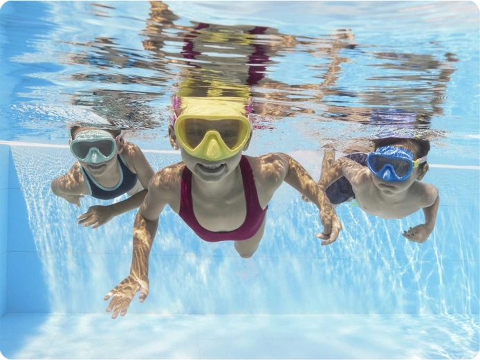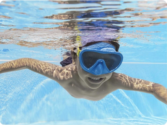 La lentille résistante offre une image nette sous l’eau et protège les yeux du soleil – idéale pour la piscine comme pour la mer.