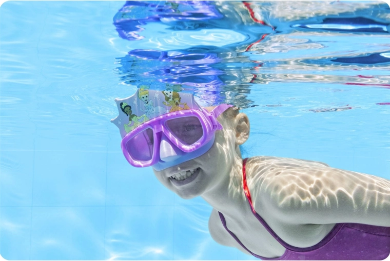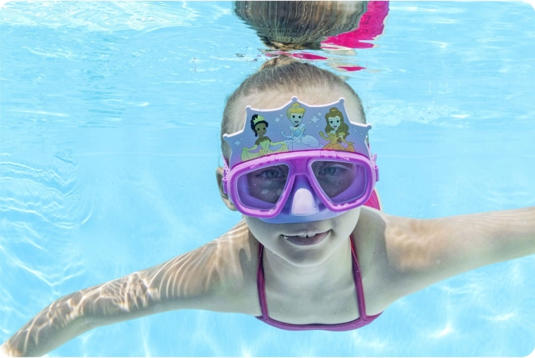 Ce masque de natation pour enfants allie un design ludique au motif PRINCESS et une protection fonctionnelle des yeux. Le joint souple et la forme ergonomique s’adaptent de manière fiable au visage, réduisant la buée et les infiltrations d’eau indésirables. Grâce aux lentilles en polycarbonate avec filtre UV, les enfants profitent d’une vision nette et d’une meilleure protection au soleil.