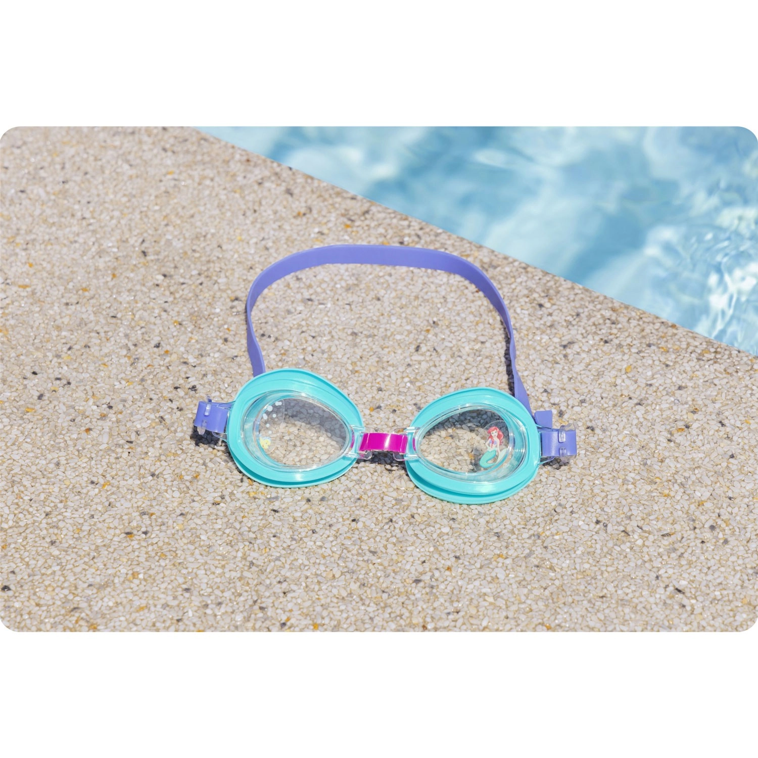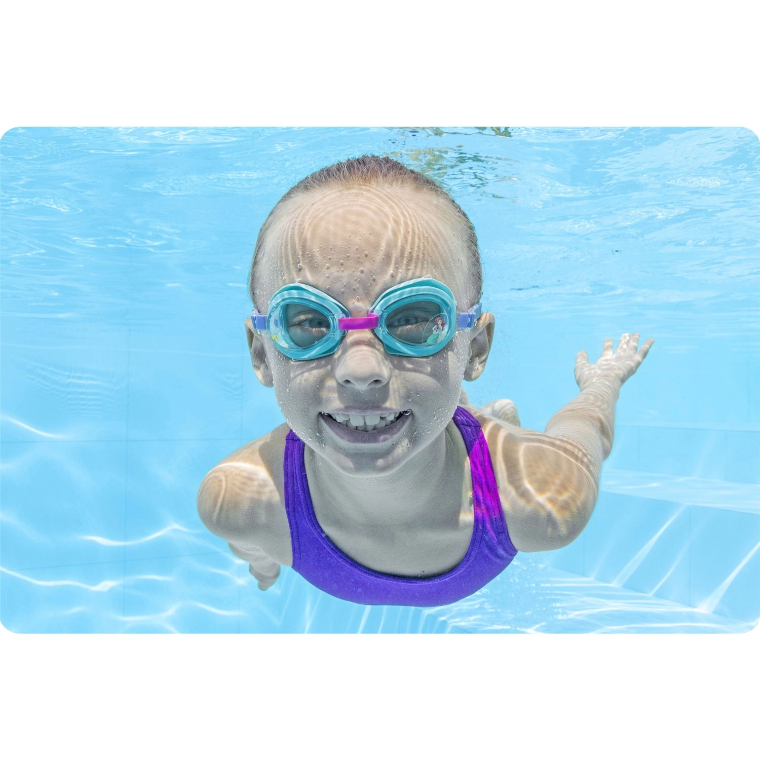 La forme ergonomique s’adapte au visage et, avec le joint en silicone souple, empêche l’infiltration d’eau. La sangle en silicone réglable permet un serrage rapide et précis pour que les lunettes restent en place même lors des jeux dans l’eau. Le design ludique au motif ARIELKA enthousiasme les enfants et les motive à nager.