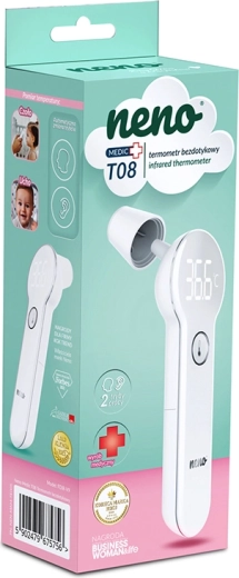 Le NENO Medic T08 est un thermomètre sans contact moderne conçu pour une mesure sûre et hygiénique sans réveiller les enfants endormis. Il utilise une technologie infrarouge précise, qui fournit un résultat en 1 seconde avec une précision de ±0,2 °C. Grâce à son grand écran LED rétroéclairé, vous lisez facilement la valeur même la nuit.