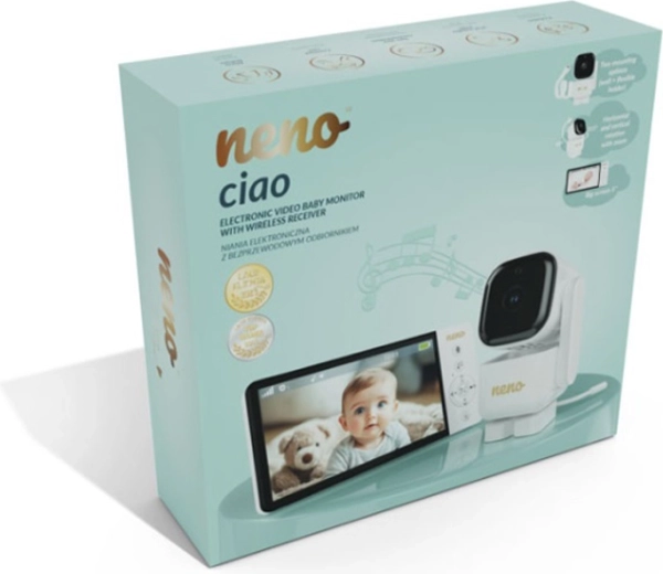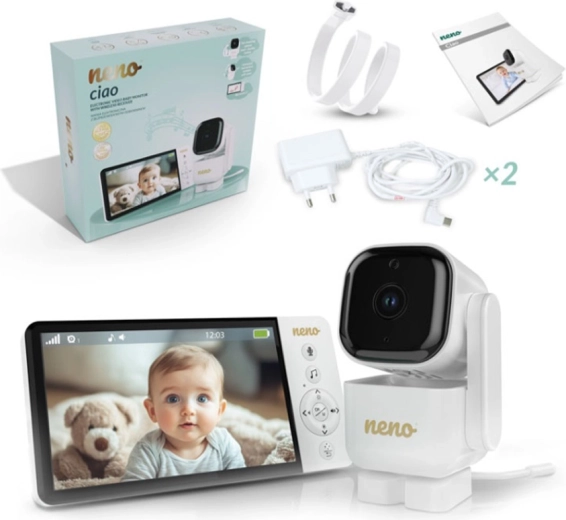 Le babyphone vidéo intelligent Neno Ciao vous apporte la tranquillité grâce à son écran couleur 5", sa caméra rotative Pan & Tilt (355°/90°), sa vision nocturne, sa communication bidirectionnelle et sa technologie VOX pour économiser l’énergie. L’émetteur offre une portée jusqu’à 300 m, un capteur de température, 8 berceuses apaisantes et une autonomie du récepteur jusqu’à 12 heures avec une batterie intégrée de 5000 mAh.