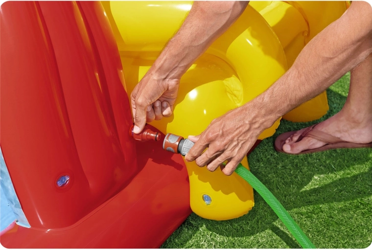 - Plaisirs aquatiques : possibilité de raccordement au tuyau pour un jet rafraîchissant et une meilleure glisse.
