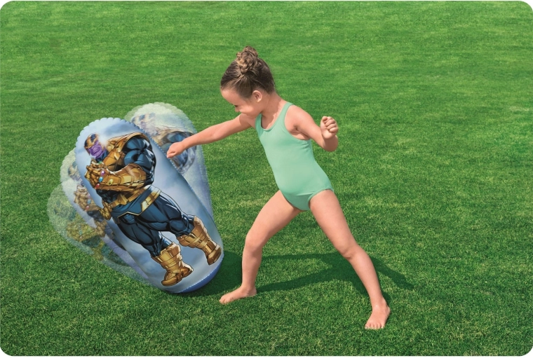 Entraînez votre précision avec le lancer d’anneaux et dépensez-vous avec le Thanos gonflable auto-redressant – une action ludique pour les jeunes fans de MARVEL.