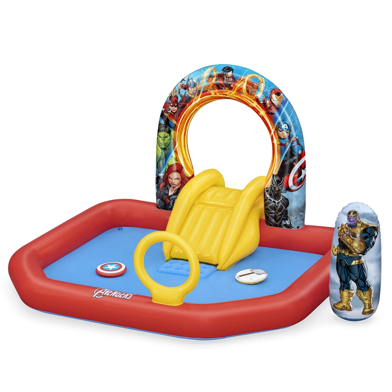 La piscine de jeu gonflable au thème des MARVEL Avengers transforme le jardin en zone de jeu pleine d’action. Grâce au fond et aux bords gonflables souples, le jeu est confortable et sûr, tandis que le PVC robuste assure une longue durée de vie pendant de nombreuses saisons.