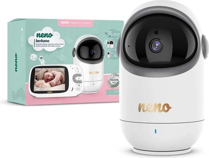 Restez serein grâce au babyphone vidéo Neno Berkano. La caméra rotative à large plage de mouvement suit chaque geste, tandis que l’écran couleur 3,2" affiche tous les détails importants. L’audio bidirectionnel vous permet non seulement d’entendre bébé, mais aussi de le rassurer avec votre propre voix.