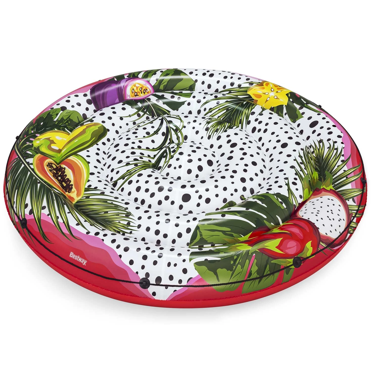 Découvrez le confort et le plaisir sur l’eau avec le matelas île flottante BESTWAY en taille XXL. Grâce à sa large surface circulaire, profitez d’une relaxation à deux, que ce soit dans la piscine, au lac ou à la mer. L’imprimé tropical avec fruits et feuilles apporte une touche de style à votre tenue d’été et attire les regards partout où vous allez.