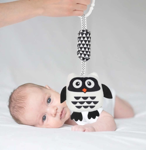 Ce jouet suspendu contrasté en forme de chouette est conçu pour répondre aux besoins des nouveau-nés. Le fort contraste des couleurs noire et blanche attire le regard des bébés et favorise le développement visuel précoce. Des matériaux doux et agréables au toucher, ainsi qu’une fabrication sûre, garantissent une découverte confortable et sécurisée.