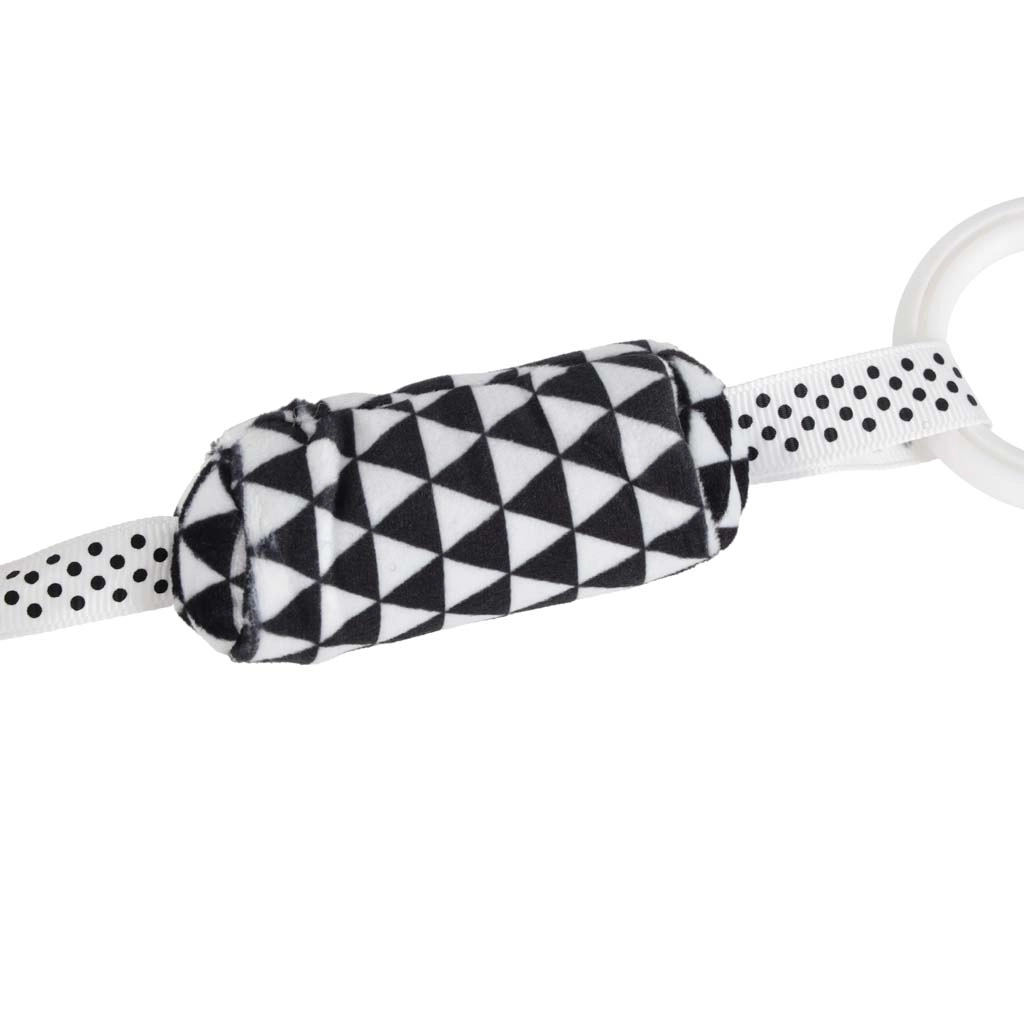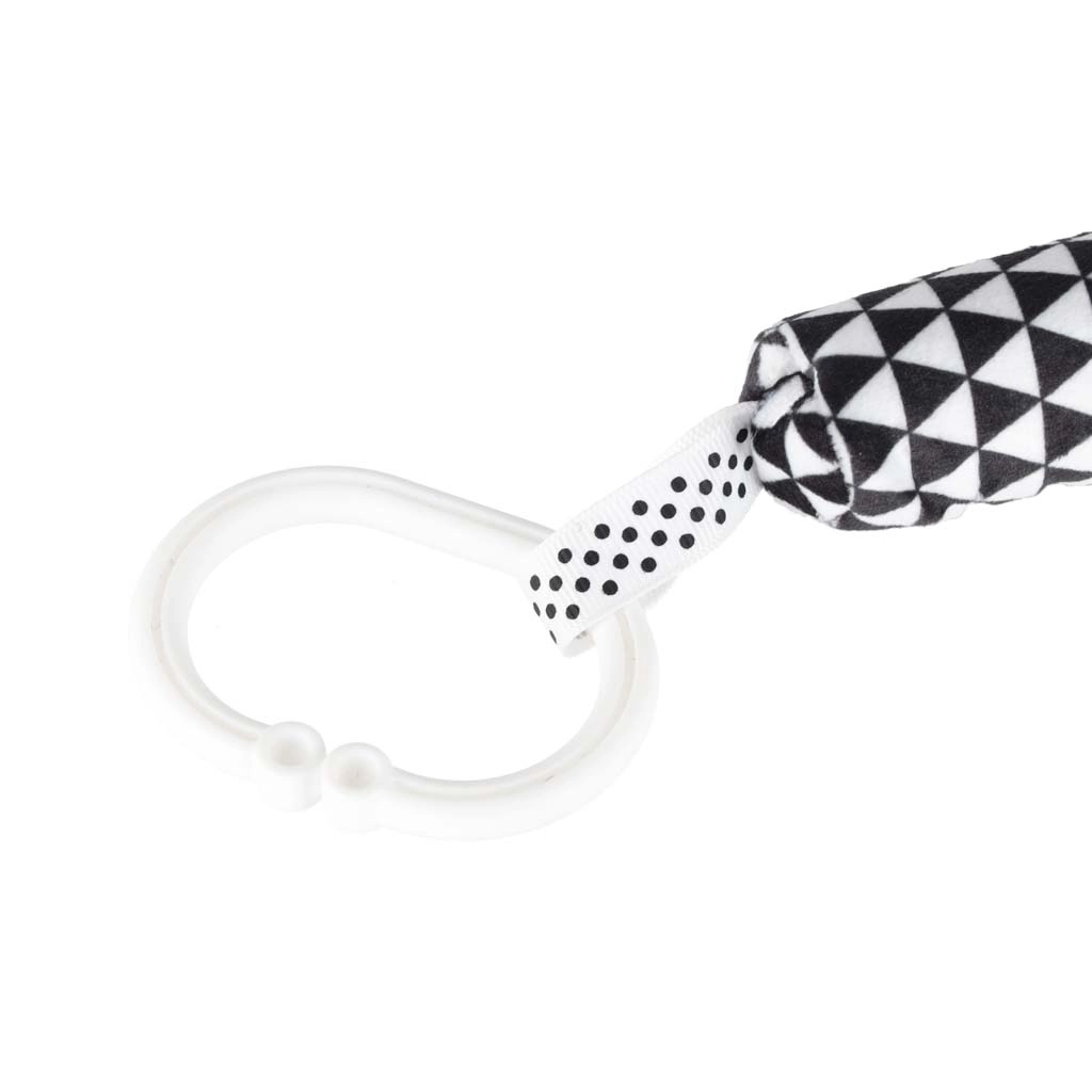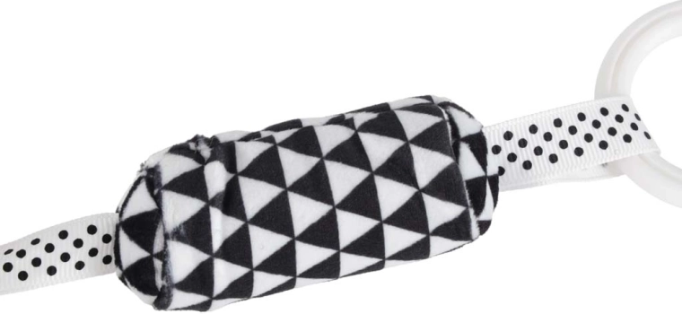 Le clip/anneau pratique permet une fixation rapide à la barre de la poussette, au siège-auto ou au bord du lit. Le jouet reste ainsi toujours à portée de main.