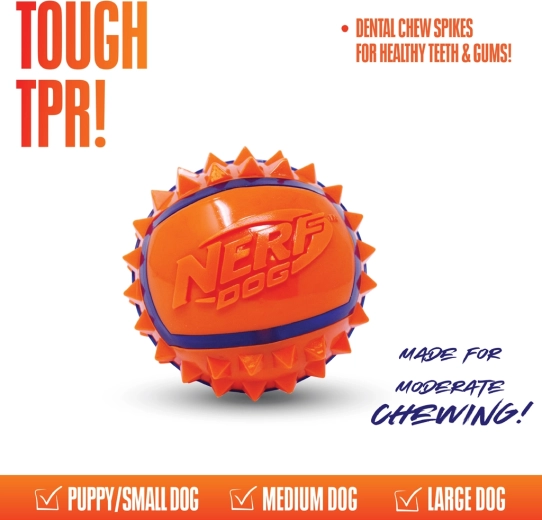La balle à picots Nerf Dog 9 cm apporte du plaisir aux chiens et une prise en main confortable pour lancer et transporter. Le caoutchouc thermoplastique (TPR) de qualité combine solidité, souplesse et durabilité, ce qui la rend adaptée à un usage régulier. Grâce à ses couleurs contrastées, la balle est facilement visible même lors de jeux rapides en extérieur.