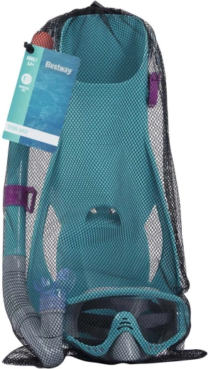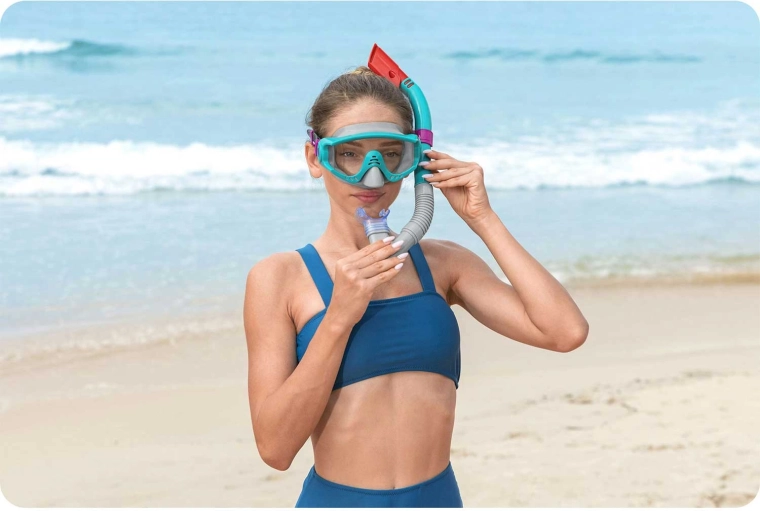 Ce set de snorkeling turquoise BESTWAY est un excellent choix pour les vacances comme pour les week-ends à la mer ou au lac. Le masque avec verres en verre trempé assure une vision claire et durable, la jupe anatomique s’adapte fiablement au visage et la sangle en silicone maintient l’ensemble en place.