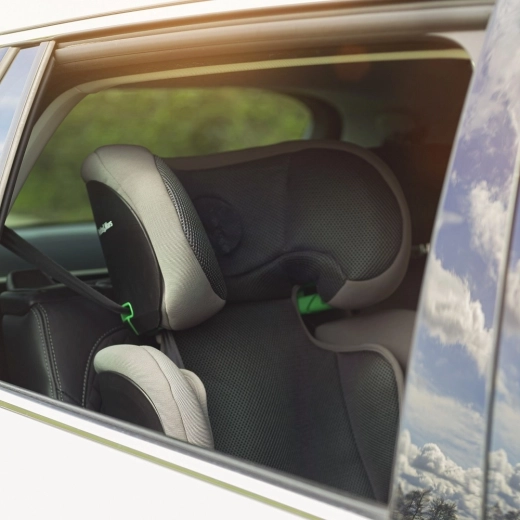 Installation rapide et sûre via ISOFIX. Les guides de ceinture verts aident à positionner correctement et en toute sécurité la ceinture 3 points sur l’épaule et la hanche de l’enfant.