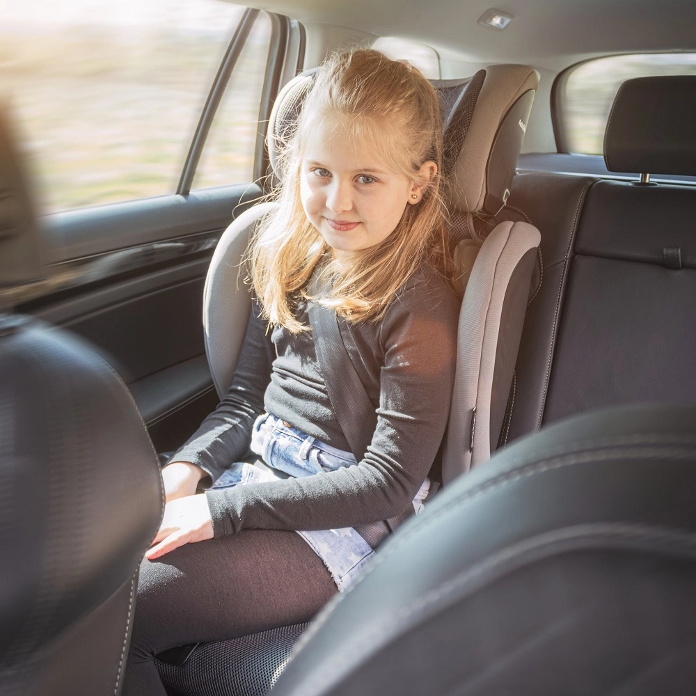 La conception avec protection latérale et guidage correct de la ceinture répond à la norme i-Size moderne pour une protection maximale de la tête et du torse de 100 à 150 cm.