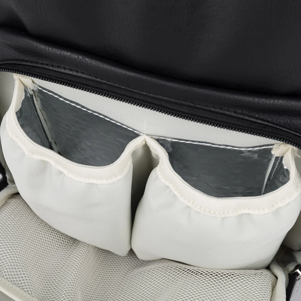 Large ouverture avec double zip et deux compartiments isothermes qui maintiennent les biberons à la bonne température même en déplacement.