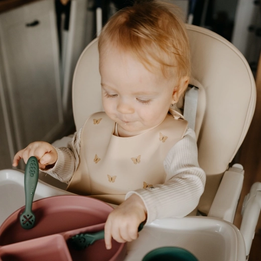 Le bavoir pratique en silicone Petite&Mars de la collection TAKE&MATCH en teinte Velvet Latte facilite chaque repas. Grâce à sa poche frontale profonde, il recueille les restes et les miettes, sa fermeture réglable assure un ajustement confortable et le silicone alimentaire doux sans BPA est délicat pour la peau de bébé. Il est facile à nettoyer, compatible lave-vaisselle et, grâce à la possibilité de le rouler, idéal aussi en voyage.