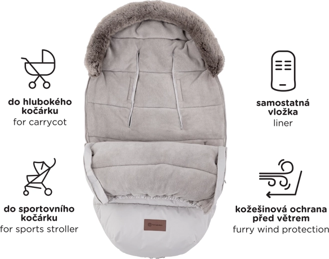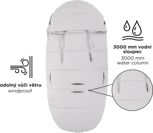 Chancelière 4-en-1 chaude et universelle pour les journées froides. Elle offre une chaleur supplémentaire et un confort moelleux, est imperméable et coupe-vent (3000 mm) avec le traitement respectueux de l’environnement BIONIC-FINISH ECO. Grâce à 6 ouvertures pour les harnais, elle s’adapte à presque toutes les poussettes, possède une fausse fourrure amovible et des zips sur toute la longueur pour réguler la température et faciliter l’aération.