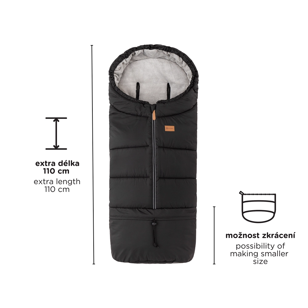 Zip central pour une ouverture rapide et partie inférieure amovible pour raccourcir la chancelière – idéale pour la nacelle et le siège auto.
