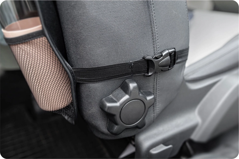 - Sangles réglables à l’appuie-tête et au siège