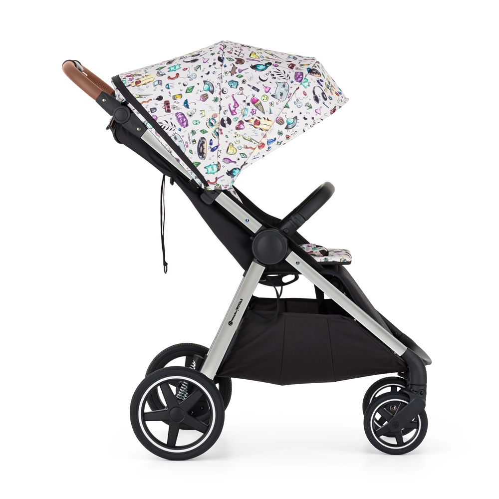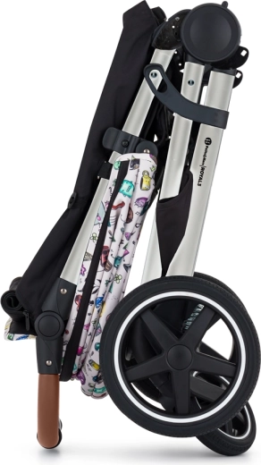 La poussette sportive élégante Petite&Mars Royal 3 Silver Limited 100 Tattoo en édition limitée à seulement 100 pièces associe une structure argentée élégante, des roues pleines sans risque de crevaison et une aération panoramique sur trois côtés pour un confort maximal de l’enfant. Elle offre un pliage à une main, une boucle magnétique, une poignée réglable en similicuir et un auvent extra long avec SPF 50. Sont inclus un auvent et un insert réversible au motif Tattoo, une chancelière couvre-jambes et un sac à langer.