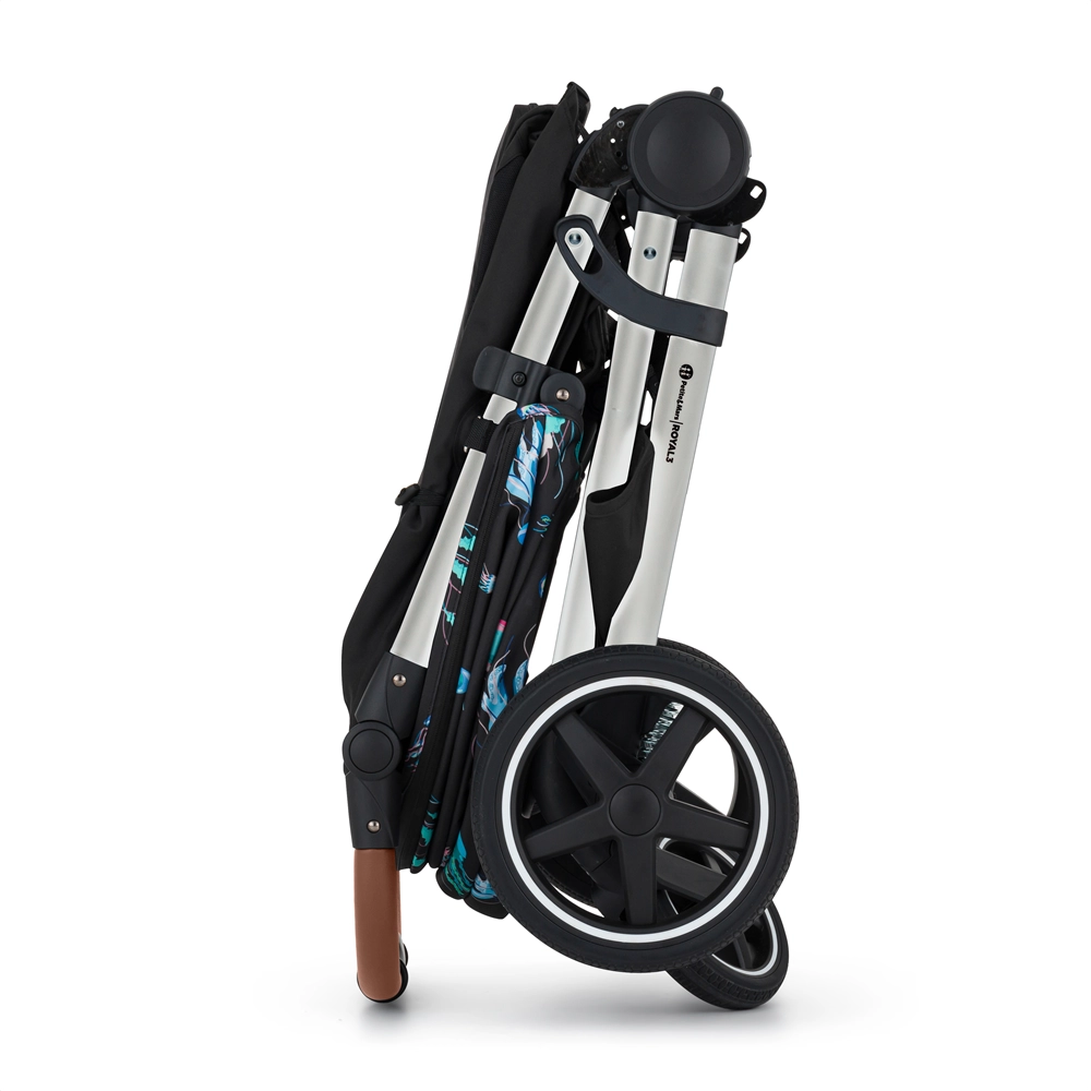 - Châssis, housse de siège, roues pleines, capote Jellyfish, insert assorti à la capote, sac à langer, couverture coupe-vent, rembourrage en 3 parties