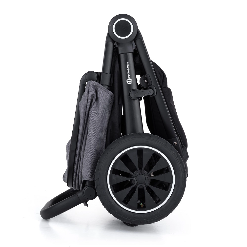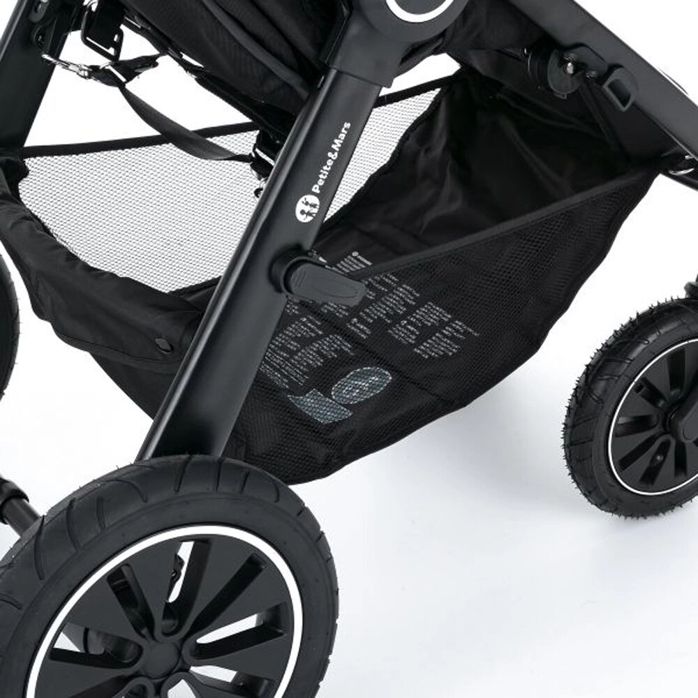 PETITE&MARS Street+ Air Black Limited est une poussette conçue avec soin pour les enfants de 6 mois jusqu’à 22 kg, pensée pour le confort de l’enfant et des parents. Légère mais solide, la structure absorbe les chocs et les roues gonflables améliorent la stabilité et la capacité de franchissement en ville comme sur chemin. La capote extra large avec fenêtre et SPF 50 protège du soleil et du vent, tandis que la longue surface de couchage et le grand dossier assurent le bien-être à chaque sortie.