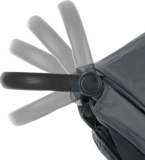 Poignée réglable en hauteur, arceau amovible en similicuir et inclinaison du dossier et des jambes presque à plat pour une sieste paisible.