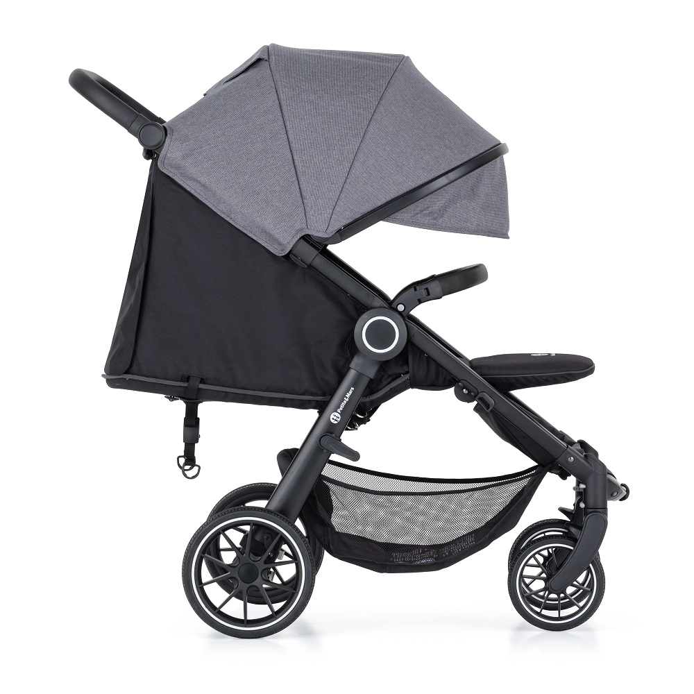 Poussette sportive légère et robuste pour un usage quotidien, de 6 mois jusqu’à 22 kg. Elle offre des roues RWS entièrement en gomme sans risque de crevaison, un pliage facile à une main, un dossier et un repose-jambes inclinables presque à plat et une capote extra large avec SPF 50. Grâce à la poignée réglable en hauteur, au panier spacieux et au frein central, la conduite est confortable, sûre et pratique en ville comme sur chemins légers.
