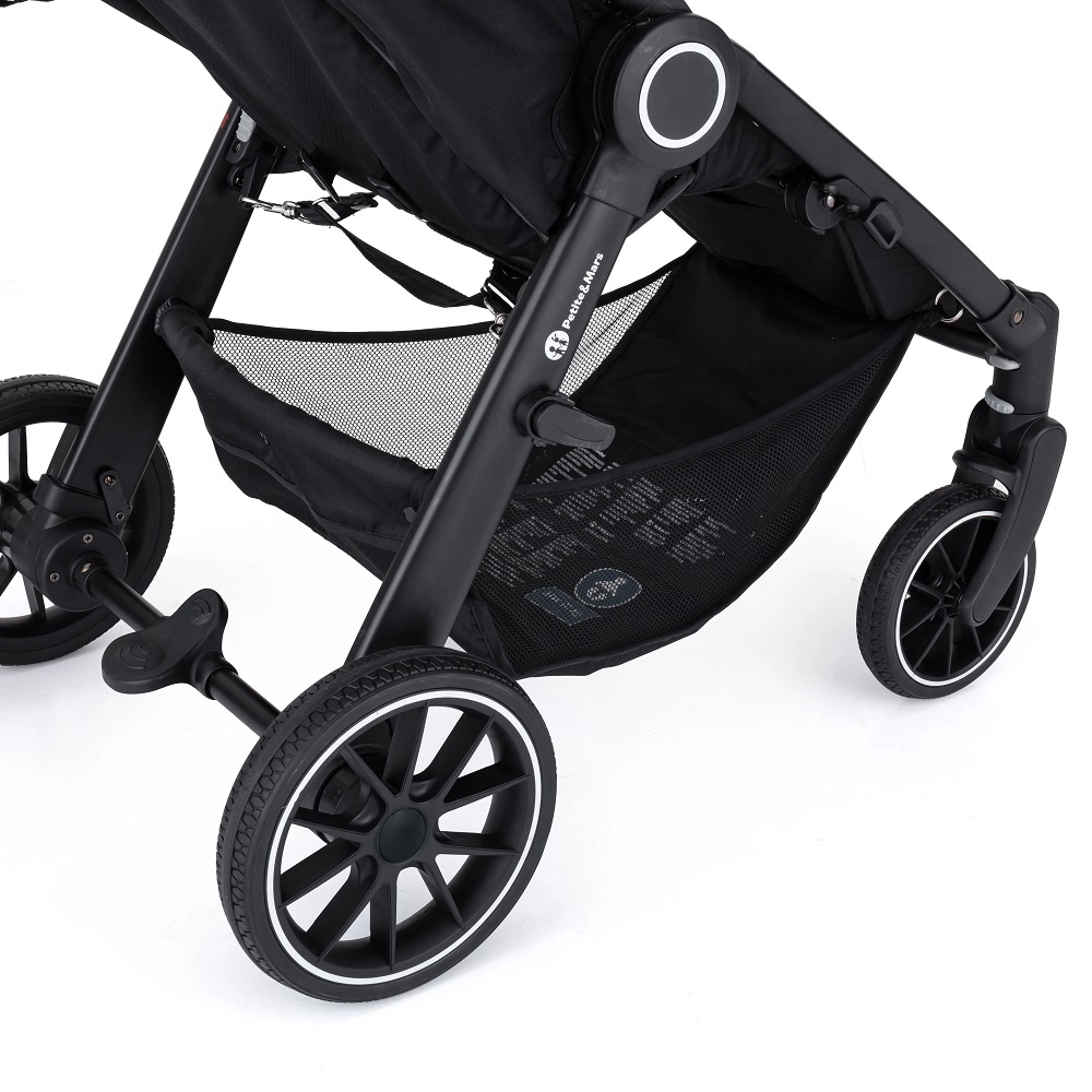 La Petite&Mars Street+ RWS Black Limited 100 est une poussette sportive élégante et pratique, capable d’affronter des terrains plus exigeants. Sa structure stable, légèrement suspendue, et ses roues RWS tout caoutchouc offrent une conduite fluide sans crainte de crevaison. Elle convient aux enfants de 6 mois jusqu’à 22 kg, avec une charge totale pouvant atteindre 25 kg.
