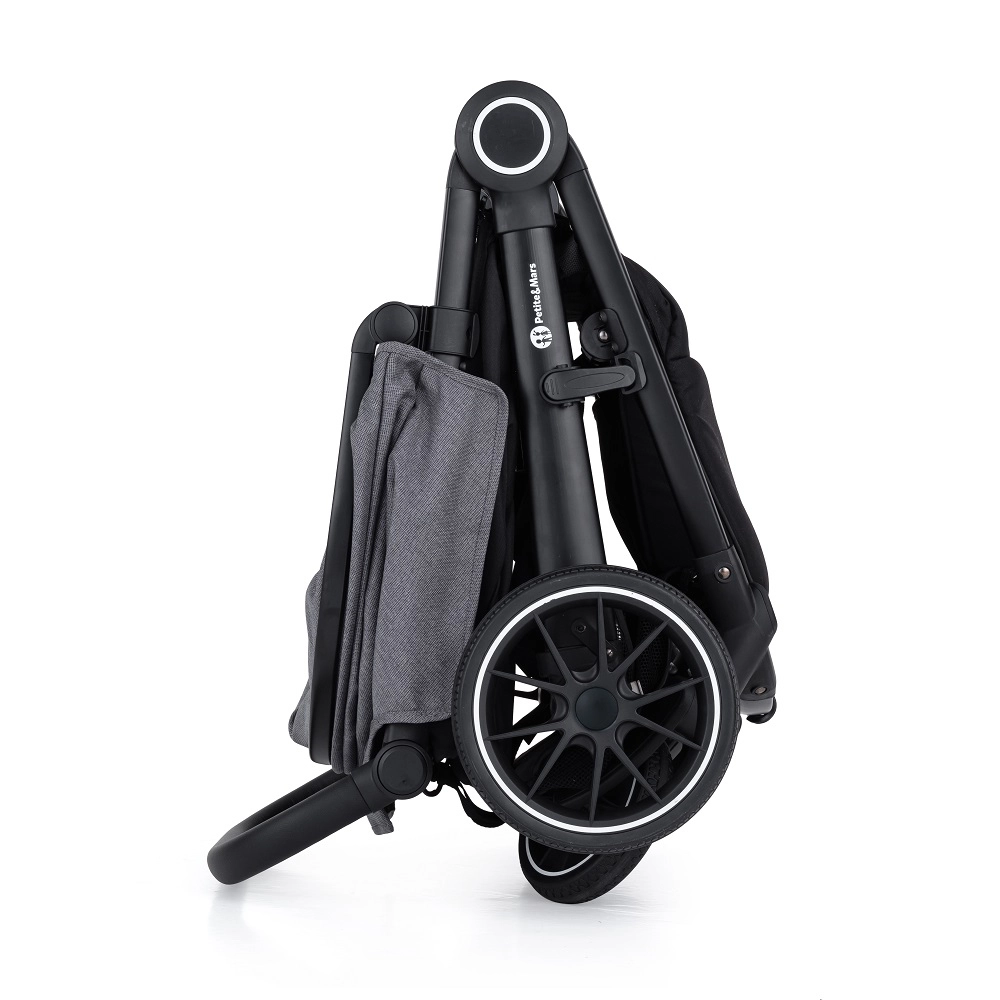 La poussette se plie facilement d’une seule main en un format compact, ce qui lui permet d’entrer aisément dans le coffre d’une voiture ou dans de petits espaces, et de se transporter sans effort.