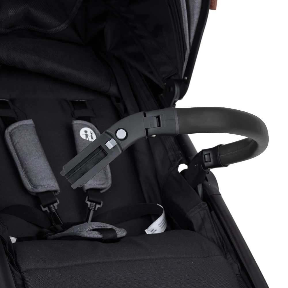 Le harnais 5 points, l’arceau amovible et pivotant, ainsi que le grand dossier réglable avec filet de ventilation, offrent un confort et une sécurité maximaux à chaque sortie.