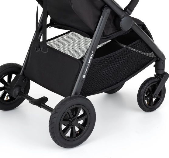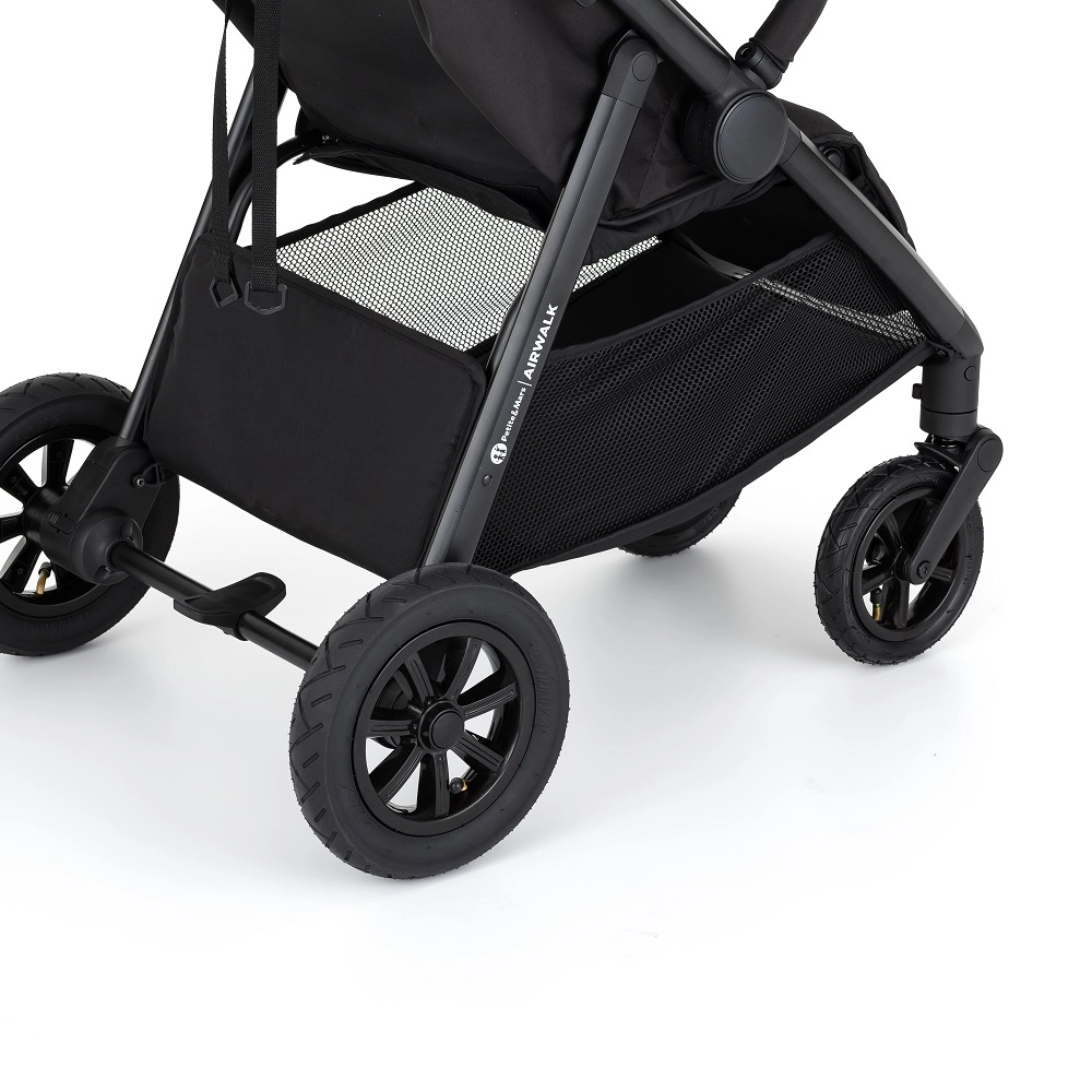Découvrez le châssis de la poussette PETITE&MARS Airwalk, léger mais robuste, avec pliage facile, roues gonflables tout-terrain et suspension confortable. L’assise s’incline presque à plat, le repose-jambes est réglable et la boucle magnétique du harnais 5 points assure une conduite sûre et agréable. Le panier spacieux supporte jusqu’à 3 kg. La capote s’achète séparément et peut être changée à tout moment.