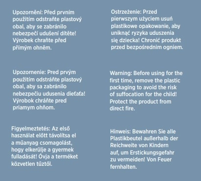 - Retirez l’emballage plastique avant la première utilisation. Protéger du feu direct.