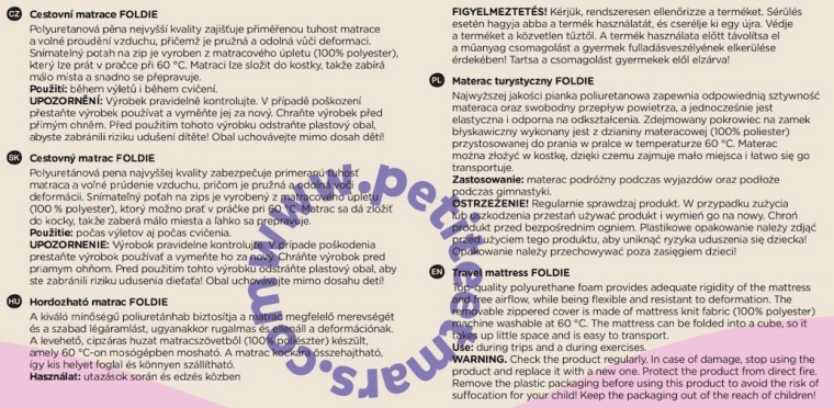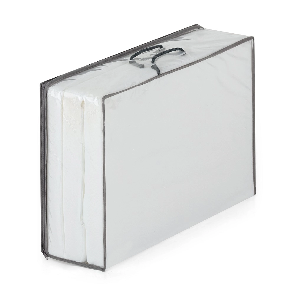 La housse zippée en jersey de matelas résistant se retire facilement et se lave à 60 °C. Le matelas se plie rapidement en cube, ce qui lui permet de ne pas prendre de place dans la voiture ni à la maison. Un sac avec poignée est inclus pour un transport et un stockage aisés. Convient aux lits de voyage et comme tapis de gym.