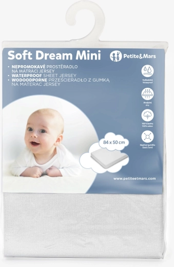 Le drap-housse imperméable PETITE&MARS Soft Dream Mini est un excellent choix pour les petits lits. Il associe un jersey 100 % coton doux pour le confort de bébé et une protection du matelas contre l’humidité. Grâce à son élastique tout autour, il reste bien en place, ne plisse pas et le lit garde toujours un aspect soigné.