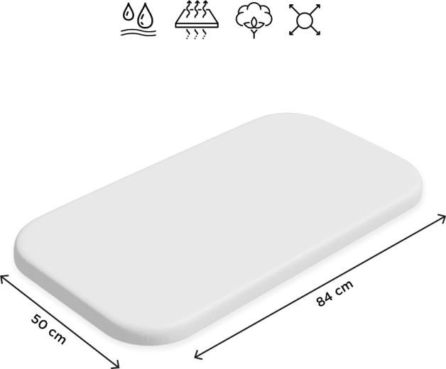 Drap-housse pratique et confortable pour bébé, dimensions 84 × 50 cm. Grâce à sa couche imperméable, il protège le matelas de l’humidité ; le jersey de coton doux est agréable au toucher et respirant. Avec une bordure élastiquée, il tient parfaitement sur le matelas et peut être lavé jusqu’à 95 °C pour une hygiène maximale.
