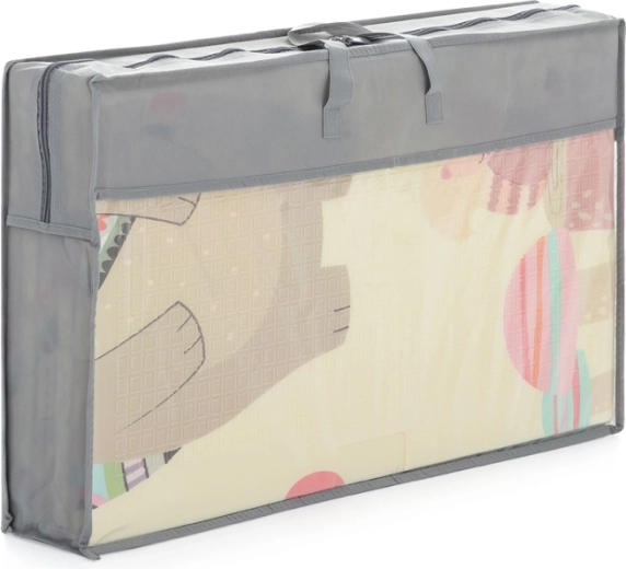 Le tapis est réversible avec des motifs ludiques, ce qui rafraîchit facilement toute chambre d’enfant. Grâce au pliage en plusieurs sections, vous le rangez en un instant ou le glissez dans le sac zippé pratique avec poignées – idéal pour les voyages ou pour le déplacer entre la chambre, le salon ou la terrasse.