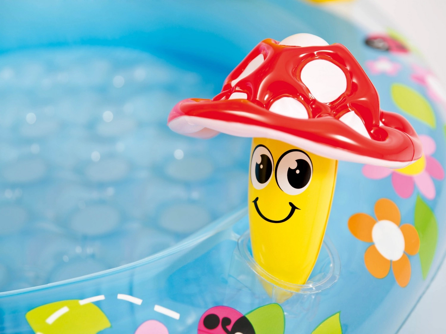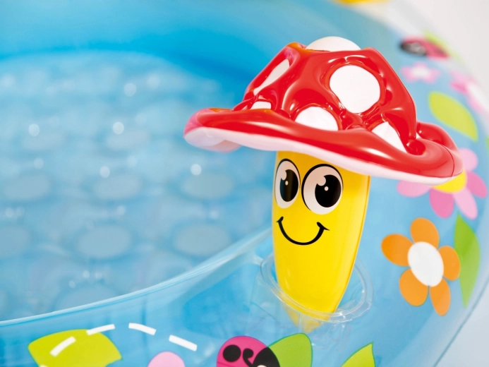 Adorable piscine pour enfants INTEX Amanite offrant une fraîcheur estivale sûre pour les tout-petits. Le pare-soleil intégré en forme d’amanite protège du soleil, le fond souple assure le confort et le PVC résistant supporte même les jeux les plus mouvementés. Inclus également une petite jouet gonflable et une rustine pour des réparations rapides.