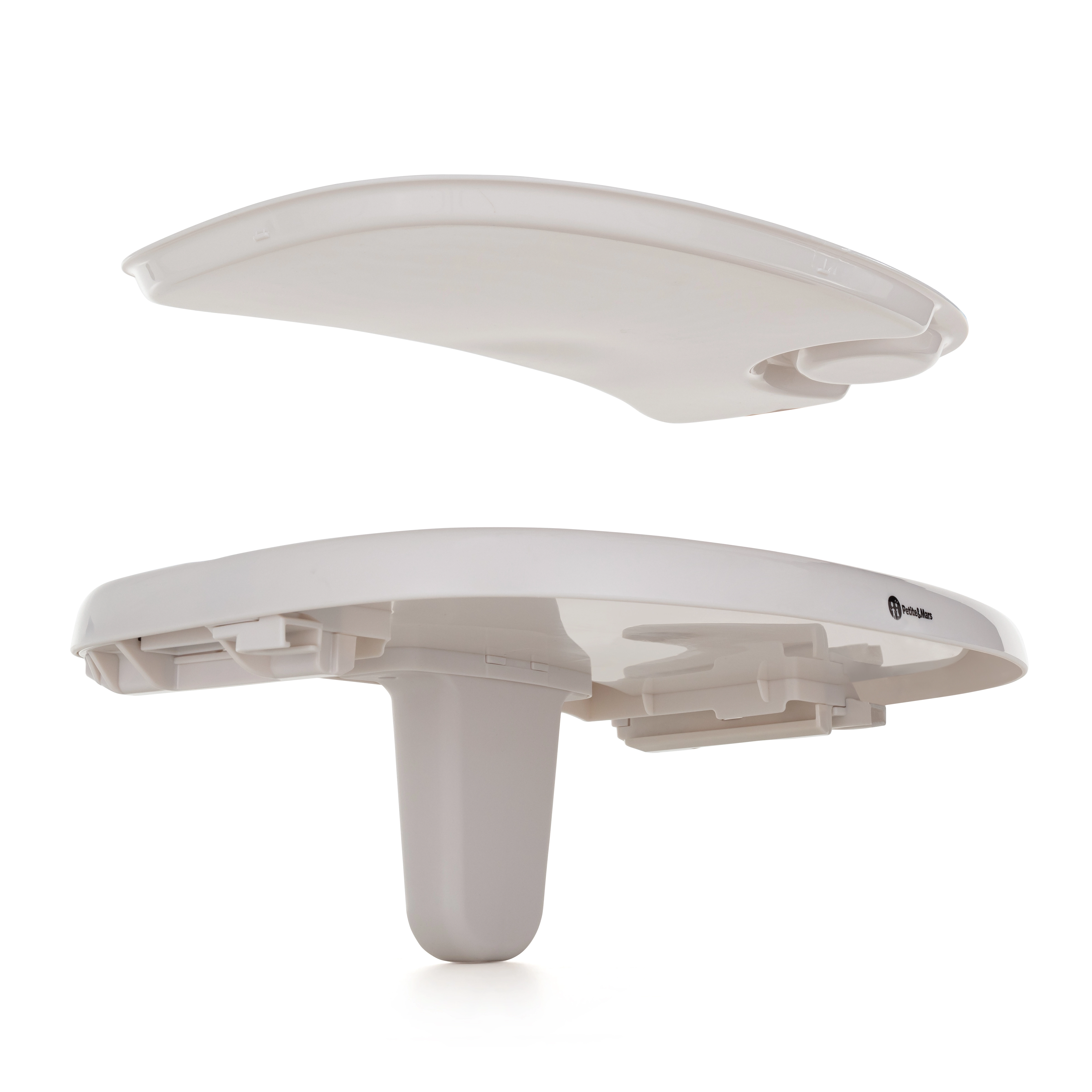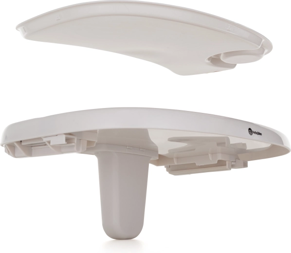 Le large plateau se compose d’une base et d’une partie supérieure moulée avec un emplacement pour gobelet ; la partie supérieure passe au lave-vaisselle.