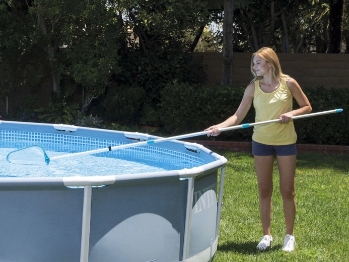 Avec ce kit universel de nettoyage de piscine INTEX, vous disposez de tout le nécessaire pour l’entretien quotidien. La perche télescopique en aluminium, avec une portée jusqu’à 239 cm, permet de nettoyer aisément la surface et le fond, qu’il s’agisse de feuilles, d’insectes ou de dépôts. L’aspirateur se raccorde à un tuyau d’arrosage standard et utilise le flux d’eau pour aspirer les impuretés dans le sac fourni.