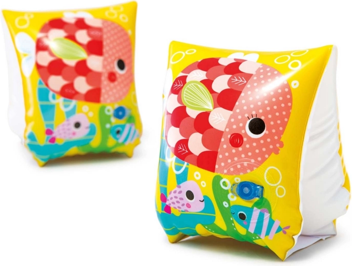 Les motifs colorés de petits poissons amusent les enfants et les bords lisses se glissent facilement sur les bras. Idéal pour la piscine, le lac et la mer.
