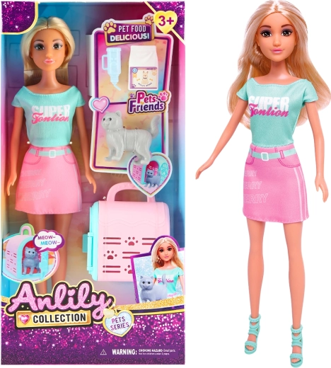 Ce set enchanteur allie amusement et apprentissage. La poupée, vêtue d’une jolie tenue, et son adorable chat inspirent les enfants à créer leurs propres histoires, tandis que la boîte de transport permet de « voyager » en toute sécurité avec leur compagnon partout où ils vont. Un jouet idéal pour la joie quotidienne et le développement de la créativité.