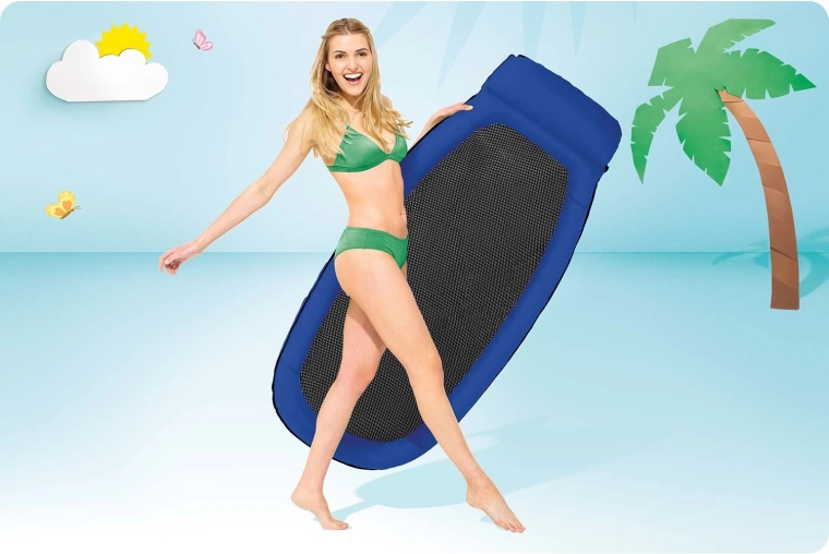 Le matelas de plage Intex séduit par sa conception unique avec fond en maille, qui permet un rafraîchissement constant sans avoir à être entièrement dans l’eau. Il est fabriqué en PVC associé à de la maille et offre un couchage confortable grâce à son oreiller intégré.