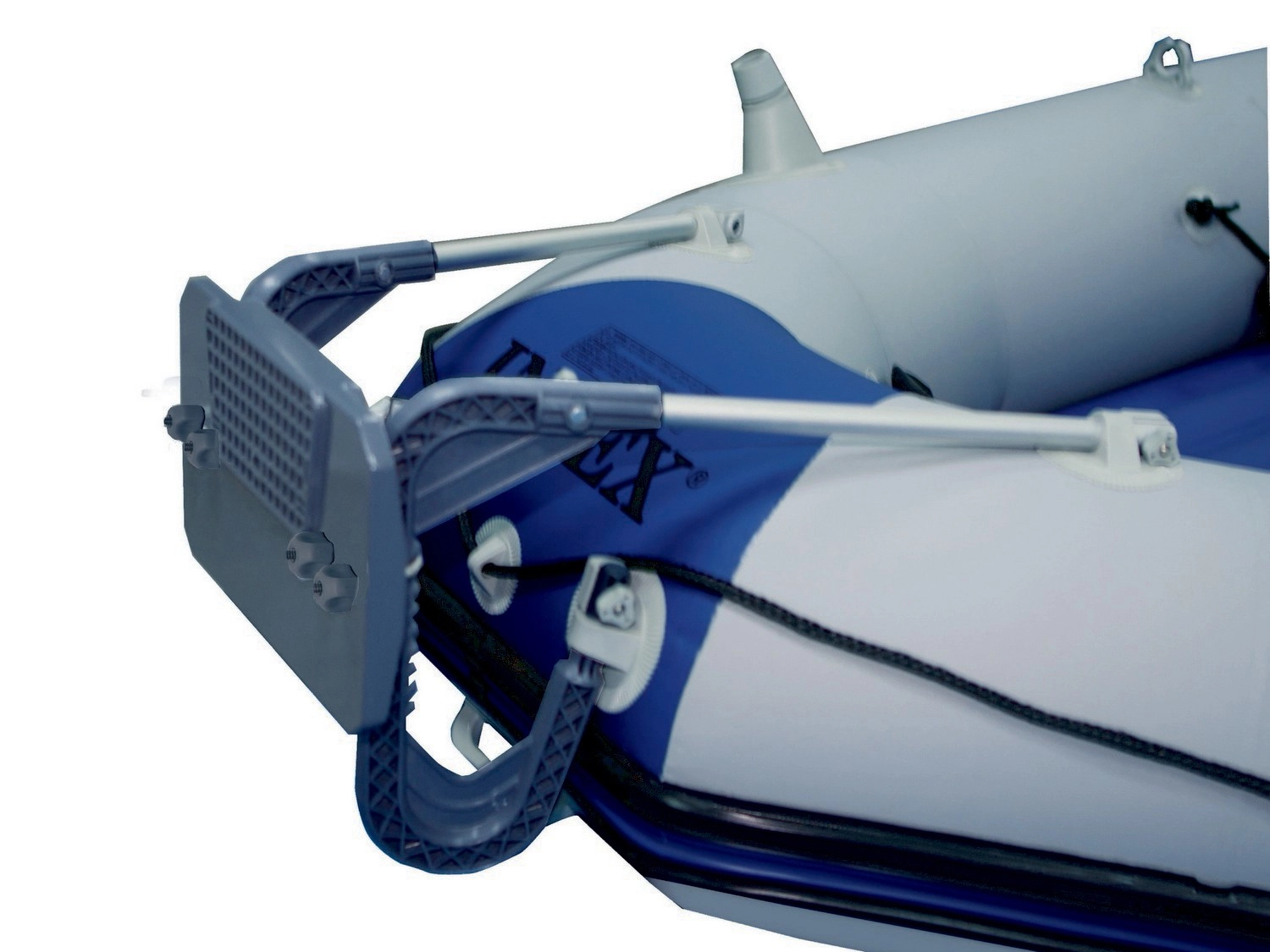 Ce support de moteur de haute qualité (tableau arrière) est conçu pour une fixation fiable et solide du moteur sur les bateaux pneumatiques INTEX. L’association d’une plaque en plastique robuste et d’un châssis en aluminium résistant garantit stabilité, longue durée de vie et faible poids pour une manipulation aisée.
