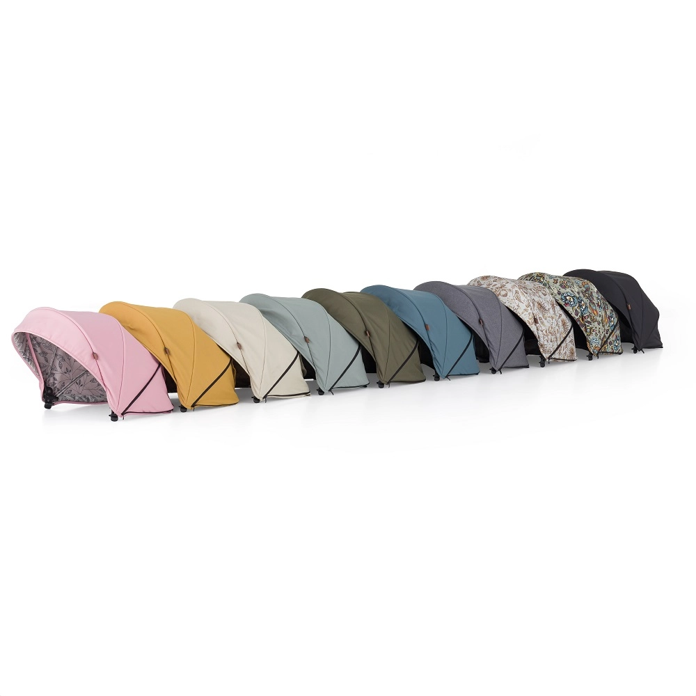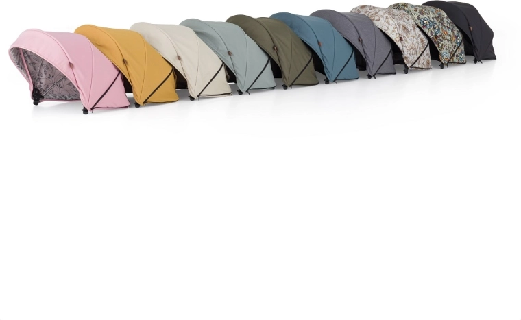 Capote facilement amovible et large choix de couleurs pour rafraîchir instantanément le look de la poussette Royal2.