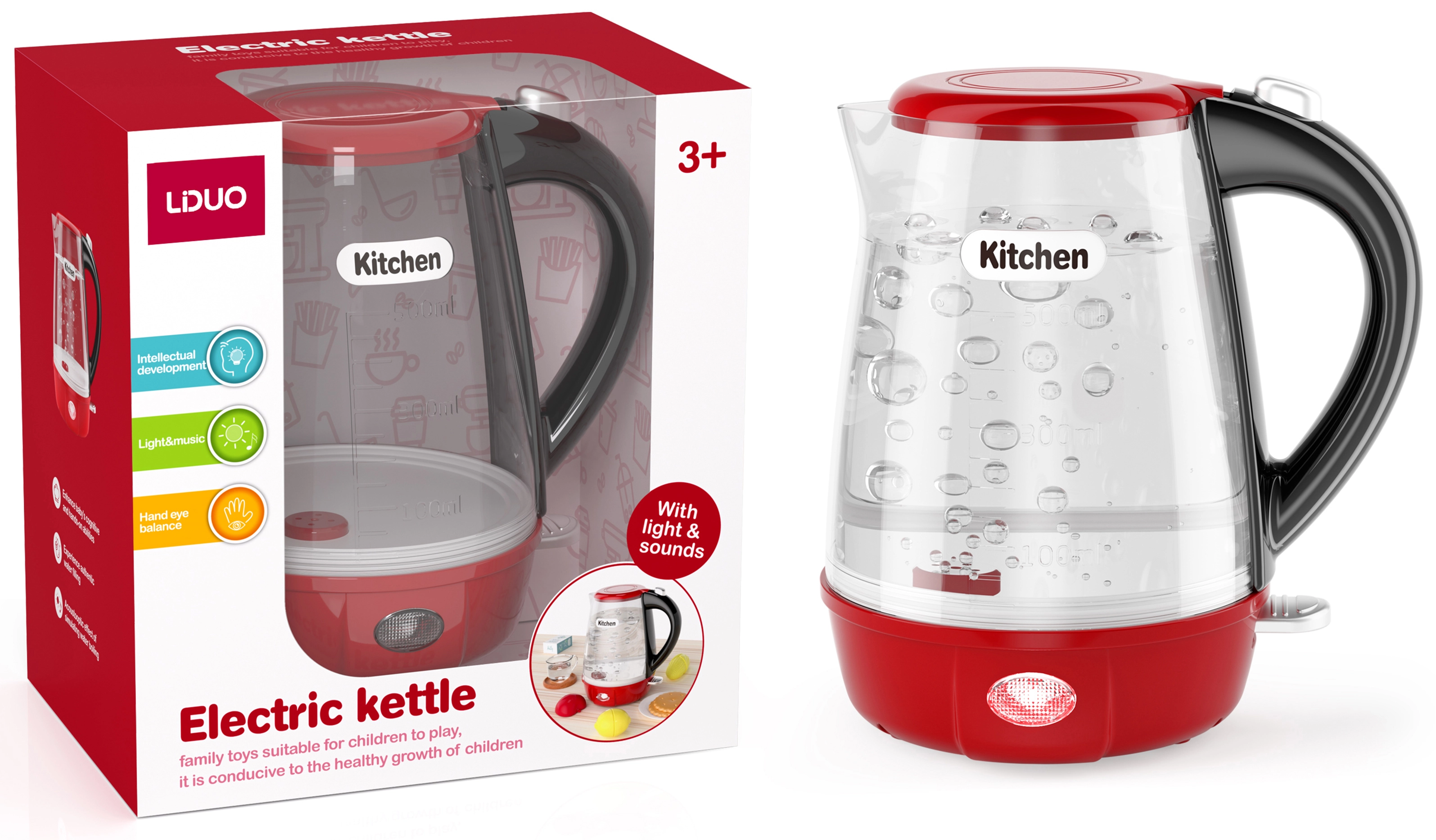 Jouer avec la bouilloire développe la motricité fine, initie les enfants aux bases de la préparation des boissons et encourage la pensée créative. Les enfants peuvent « préparer » du thé ou du café pour les parents et les amis, et entraîner leurs compétences sociales dans des jeux de rôle.